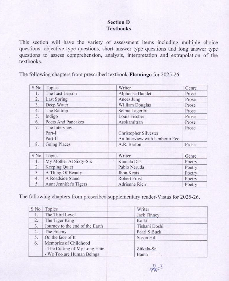 The following chapters from prescribed supplementary reader-Vistas for 2025-26.