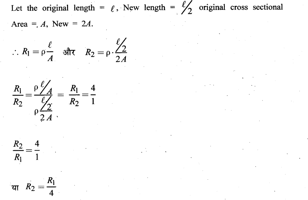 Question 29 – What will be the resistance of a conductor wire if its length is reduced to half of its original length and its cross-sectional area is doubled?