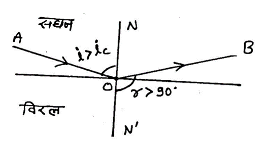 (ii) If a ray of light travels from a denser medium to a rarer medium and strikes the interface at an angle greater than the critical angle, the ray does not enter the rarer medium but is reflected back into the denser medium. This phenomenon is called total internal reflection.